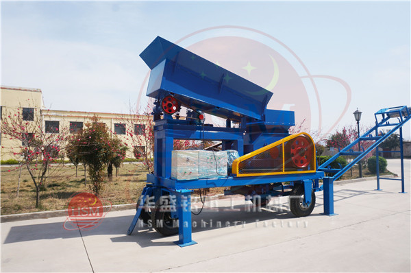 移動對輥破碎一體機運行中,各項給料、破碎、篩分設備協調作業,石料先進入破碎部分進行破碎加工,制砂之后進行篩分,粒度合格的物料才能進入制砂機進行制砂加工,然后合格的石料成品由出料裝置排出,未達標的部分則返到機內繼續再次加工處理。